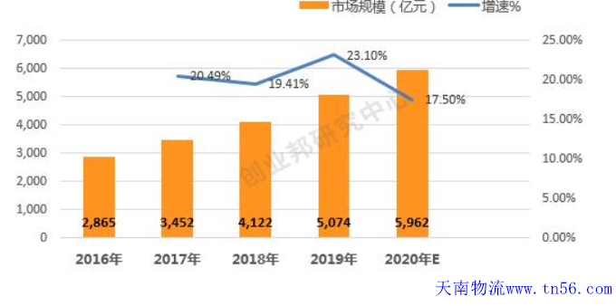 零擔(dān)物流:零擔(dān)物流是一種“拼車”的運(yùn)輸方式,承運(yùn)企業(yè)把運(yùn)往同一個地方的多家客戶的貨物集零為整,待到達(dá)目標(biāo)地點后再分發(fā)至各個客戶。受益于制造業(yè)和商貿(mào)業(yè)前置倉和渠道下沉的影響,大宗貨運(yùn)需求大幅下降,小批量、多批次、高時效的零擔(dān)快運(yùn)需求呈增長趨勢。中國外運(yùn)與中國物流與采購聯(lián)合會攜手發(fā)布《新時代中國智慧物流發(fā)展報告》,報告中指出,2019年中國的零擔(dān)物流市場規(guī)模為1.62萬億元,同比增長23%。